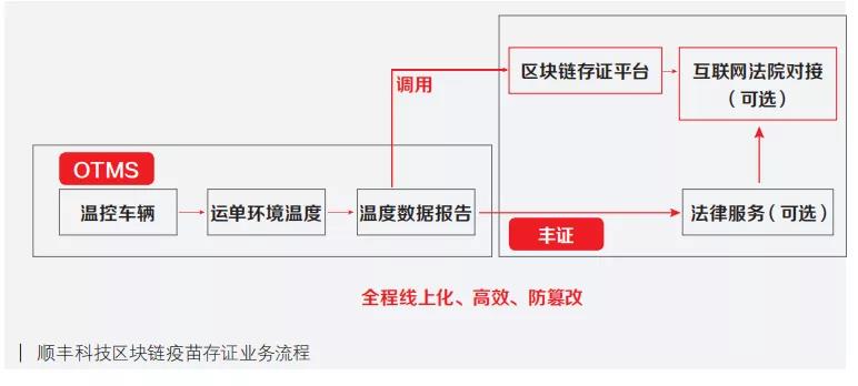 “传统代理经销模式下的酒水行业,因销售渠道级别繁多,出现了三大痛点难点:假货串货严重,难以追踪;流通成本高,效率低;信息化程度低,销售无法监控。”陈晓文介绍,针对这些问题,顺丰科技研发出了丰溯-区块链酒水溯源系统方案。一是实现一瓶一码防窜货。丰溯已实现酒水一瓶一码,给每瓶酒附上防拆溯源码,提升商品在流通中的窜货成本和难度,为酒水生产企业或主要酒水渠道商提供安全、可靠的管理手段。二是实现酒水产品的信息透明可追溯。通过溯源码,将酒水的全程信息进行记录、同步、核验、分析,保证数据的一致性、完整性、准确性,解决不同环节的信息孤岛问题,实现酒水信息的透明可追溯,提升消费者对产品的信任。三是确保记录信息不可篡改。采集的酒水溯源数据通过对接顺丰区块链存证平台,实现数据实时上链存证。基于区块链技术,运用其防篡改、可溯源的特性,结合密码学技术、隐私保护机制,实时固化电子数据,从而确保数据高效、安全、不可篡改。四是助力监管部门有效监管。监管部门可以对酒水溯源信息进行监督,发现问题时,可以通过丰溯平台快速定位问题,实现酒水来源可跟踪,酒水去向可追溯,能以最可靠快速的方式跟踪酒水商品的安全,保障消费者的合法权益。在整个过程中,通过数据采集将各环节数据(包括酒水基础信息、出入库信息、物流信息等),与防伪溯源码进行关联,形成完整的溯源信息链。“区块链溯源,本质就是在传递信任。”陈晓文介绍,丰溯商品溯源系统结合酒水仓储、配送的实际业务场景,实现管理过程信息化、物流数字化、查询便捷化、源头可溯化,成为解决酒水行业痛点的核心优势。一次快递物流活动一般要经过下单、出库、配送、妥投、入库、结算等诸多环节,其中涉及到不同的参与方和不同的货物交接环节,结算多方通过不同系统接口对接完成不同阶段数据的共享与流通,通过纸质的结算凭证作为结算的依据。传统层面上,货物交接单还是纸质的,不同参与方分别在货物交接过程中在纸质的单据上签字,最后需要运营人员将单据签收情况人工录入信息系统。这实质上只打通了信息流动环节,却没有形成完全意义上的信任,随着业务量的扩展,成本高、效率低,结算周期长等问题越来越暴露出来。在快递物流交付中,区块链可以解决ToB业务结算对账成本高、周期长等痛点。者文明介绍,京东物流利用区块链技术打造了物流单据签收平台“链上签”,利用区块链分布式账本技术与数字签名技术实现与重要商家的智能对账服务,缩短结算账期,提升资金周转率,实现了“高信任、低成本、效率高”的运营模式。据了解,链上签采用数字证书签章明确签章主体,实现签收人主体真实,签收过程可信;实现签收单据实时审计和查验并具备法律效率,解决传统纸质签单审计难、代签、漏签、丢货等痛点;同时利用区块链账本技术解决京东出库明细数据与客户入库明细数据的差异问题,将出库环节、配送环节、妥投环节、入库环节的货物交接的数据,通过可信终端实时采集,实时上链,并带有当前操作人的数字签名,实现双方共同管理一笔账,可追溯,并且不可抵赖。“可信单据区块链、可信对账区块链可以带来更多的价值。”者文明介绍,链上签实现了物流单据无纸化,线上打通供应商、重要商家、物流企业之间的单据流,实现不同参与方在一个共信的联盟链里完成单据流的确认与共享,降低纸质单据的运营管理成本。基于电子运单模式实现交易及清算,缩短对账时间成本。区块链具有不可篡改的特性,通过将包含有运价规则的单据数据进行确认上链后,双方即拥有同一份交易明细数据,同一份运价规则,结算双方的计费结果基本不会有差异,对账过程则通过智能合约完成,消除了人工出错的情况,也降低了整个对账成本。同时,通过区块链共识机制,将签收过程上链永久存证,直接在区块链账本上获取已签收的电子签单,实现无纸化签单返还功能,可为企业带来增值服务收益。此外,利用区块链账本上单据和应收账款数据通过物流金融平台,实现供应链金融增值服务,解决中小微企业融资难,融资成本高的问题,真正实现普惠金融。在新冠肺炎疫苗的冷链运输中,区块链的存证应用得到了极致的发挥。医药冷链对运输全程的温湿度要求较为严格,温度记录多为自动采集、人工记录、最后上传到中心数据库的方式,过程中若出现失温和超温的漏报、瞒报情况,会对医药用户和企业造成巨大影响。防止人工统计偏差、防止数据篡改、及时报警与处理等需求,使得区块链在医药冷链领域的应用势在必行。对于疫苗特别是新冠疫苗来说,温湿度控制除了医药行业的质量意义之外,又有了关乎于国计民生的另一层意义。2020年以来,顺丰医药承运了国内多家新冠疫苗生产厂商的业务,提供精温整车(疫苗寄)供应链解决方案。据了解,该方案包含GSP车辆运输、疫苗安全质量标准标准、操作SOP、整合串联订单及温度路由可视的软件、防盗抢及IoT监控系统组成的硬件,并达成了100%自有体系、100%GSP规范标准验证、100%无再委托和100%全程监控。对于最重要的全程温湿度数据,为保障数据的安全性以及可追溯,顺丰科技通过自主研发的百川供应链底盘系统与丰证平台的对接,运用区块链防篡改、防抵赖、可追溯的特性,结合密码学、隐私保护机制,实时