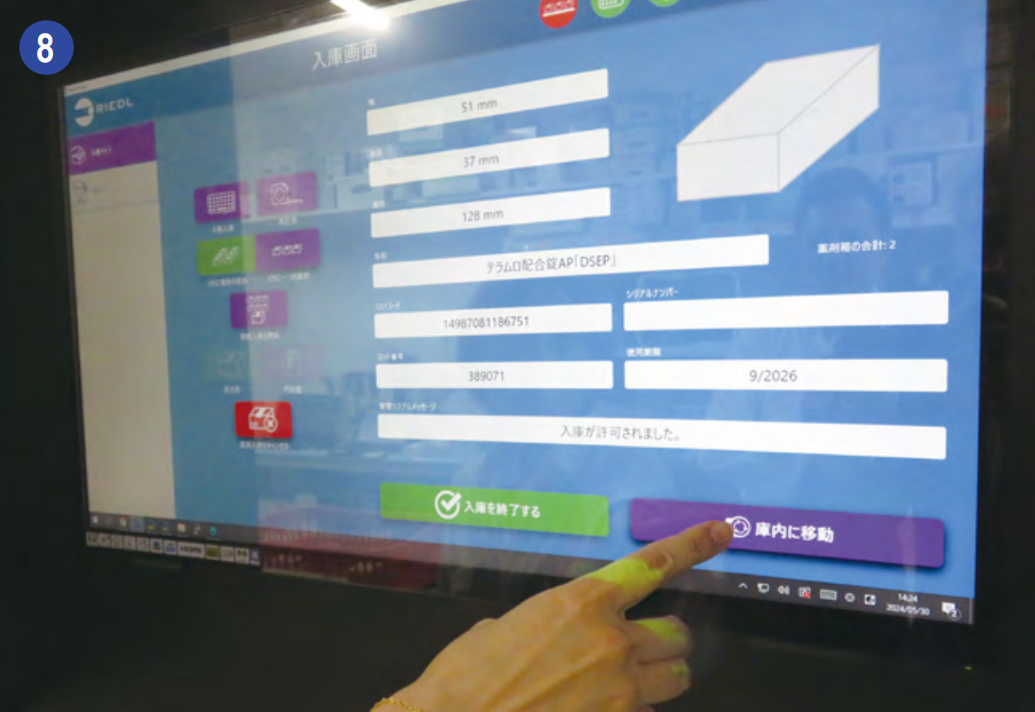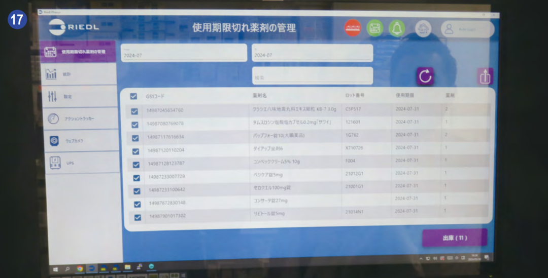 ▲ 按照投影仪指示的位置放置箱子 ▲ 重复此操作直至所有箱子放置完毕 ▲ 在触摸屏上按下入库指令 ▲ 传送带将药品从入库口输送至 Rheedlen Facis内部 ▲ 滑动部和夹持部联动,逐个抓取箱子,将药品存储至指定位置 尽管下单到批发商配送的流程没有改变,但新到药品的入库环节,Medicalyours Robotics开发了AI自动装载机。以往即使用读码器也得逐箱扫描入库(照片❺~10),而新增的AI自动装载机只需把整箱药品一次性倒进容器,机械臂就会自动分拣。这套选配装置首次在日本配药室实现AI深度学习(照片11~16)。虽然最初抓取药盒很费劲,但AI的特点就是越试错越聪明。批发商运来的药品能一次性倾倒入库完成作业,堪称革命性突破。 ▲ 这是作为选项新增的自动入库装置AI Auto Loader ▲ 若有自动入库装置,则无需逐个扫描箱子 ▲ 只需直接从入库口随机放入 ▲ 传送带将药品输送至机器人手臂操作的自动入库装置内部 ▲ 机器人手臂用真空抓手逐个抓取箱子 ▲ 放置在转盘上后,由夹持部抓取并存储至指定位置 人工管理的药房通过机器人 实现可追溯性保障 在引进机器人之前,药房的工作人员需要开箱扫描,再手动放入指定货架。实际上能坚持扫码的还算好的。很多药房因工作量庞大,工作人员根本不扫码,因此条形码形同虚设。更可怕的是,假设某药品因某些问题需要召回时,药房根本无从查证哪天配送的、何时交给患者的批次是否属于问题药品。 药品可追溯性缺失是最大问题,而能彻底解决这个问题的只有Medicalyours Robotics的机器人方案。自从这点获得行政部门理解后,情况彻底改变——渡部正之甚至受邀出席厚生劳动省主办的可追溯性条码应用研究会专家会议。 虽说机器人进驻药房意外打破了陈旧信息管理的现状,但这只是结果而非初衷。渡部正之更想强调的是,机器人实现了完美的库存管理。比如输入“下月过期药品”,就能实时显示具体品名与片数(照片17)。能实时掌握有效期与批号信息,这是传统药房从未做到的。 ▲ 一键显示临近有效期的药品,这得益于基本数据管理的实现 从某种意义上而言,日本的患者甚至可能正在服用过期药品。正因这种危机感,药房频繁开展盘点,每月盘点的都不少见。在药品流通中,已开封的余药不能退回批发商,未开封的若剩余有效期不足半年到一年也不能退。繁琐的盘点作业、从SDGs角度减少浪费等方面,数据管理本应是最基础的要求。医药行业体制竟如此陈旧,日本民众知晓这些事实后理应更加愤怒。 另一方面,已引进机器人的药房,在数据管理方面也获得了执业药剂师高度评价。实际使用的一线员工普遍表示“再也无法适应其他药房工作,想到拿错药就害怕”,可见其从心理负担中获得了解放。若沿用人工管理出现过期库存,最终会被追究管理责任,如今这些都不需要过分担心。 2日内完成不中断升级 软件系统同步在线待命 作为具有纪念意义的首家机器人药房,梅田药房目前已实现“药品零等待”。这次参观的神户最新机器人药房虽未导入EHR系统,但已实现患者在诊所等待结账时药品即开始准备,抵达药房时可直接结算的状态。在渡部正之看来这才是日本药房抗衡亚马逊的有效战略,也正是他的目标所在。 当然,也有人对药房引进机器人后,在有限空间部署新型物料搬运设备时是否存在技术难题提出了疑问。渡部正之表示意外地顺利。首店选址本就是计划建设关西最大医疗综合体的区域,在“打造更有趣的药房”共识下,机器人化与综合体开业同步实现,推进极其顺畅。而且,已经开业的药房在不中断运营的情况下,2天内就可以完成设备的导入,再经过2天的调试就可以上线使用。渡部正之表示,这是因为开发阶段就考虑了现有药房的改造需求。机器人外部存储采用预制组装结构,内部仅含导轨、支架及抓取药盒的夹爪组件。虽然导轨调平需要精密作业,但普通装修公司即可完成。此外,控制系统等软件部分是由Medicalyours Robotics程序员远程接入配置,在白天完成硬件组装后,将在夜间进行远程软件调试。随着订单增长,Medicalyours Robotics将扩充工程师团队并推进施工外包,目前正在完善相关体系。 当然,Medicalyours Robotics也面临了硬件交付的挑战。由于生产基地分布在德国、意大利和乌克兰,需经苏伊士运河海运,受国际局势影响,从接单到交货需半年之久。为此Medicalyours Robotics正与日本药房设备制造商合作开发本土化机架,力争实现框架面板等部件的国产化。 设备集成化模块化 确保药房持续运营 Rheedlen Facis机器人的核心理念是消除停机时间,其最大优势正在于此——通过模块化设计将易损耗部件集中整合,出现故障时无需排查即可直接更换预存模块。只要备有替换件,就能实现零停机持续运转,这对关乎生命健康的设备尤为关键。相比于最初的产品其作业速度提升2倍,这得益于全面轻量化设计在降低老化损耗风险的同时,显著提升了运营性能。 因此以“替换而非修理”为核心理念的RIEDL Phasys,不仅实现故障零停机,日常维护模式也发生变革。相比于过去需要厂家工程师现场排查维修,RIEDL Phasys仅需装卸4枚螺栓即可更换部件(照片18),非专业人员也能轻松操作。目前,Medicalyours Robotics正在持续优化交付流程从而缩短交付周期,但抓取药盒的机械臂等核心部件仍需从海外工厂进口。现阶段Medicalyours Robotics承诺了“最长4个月”,同
