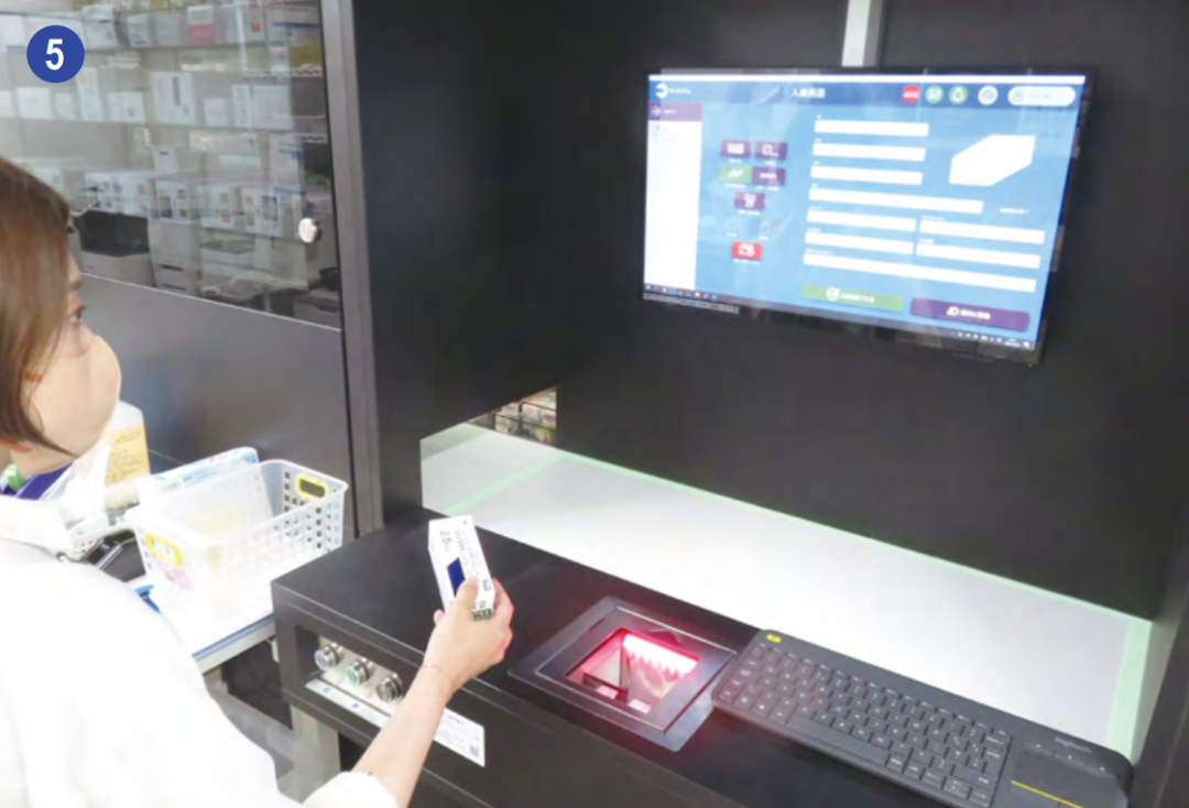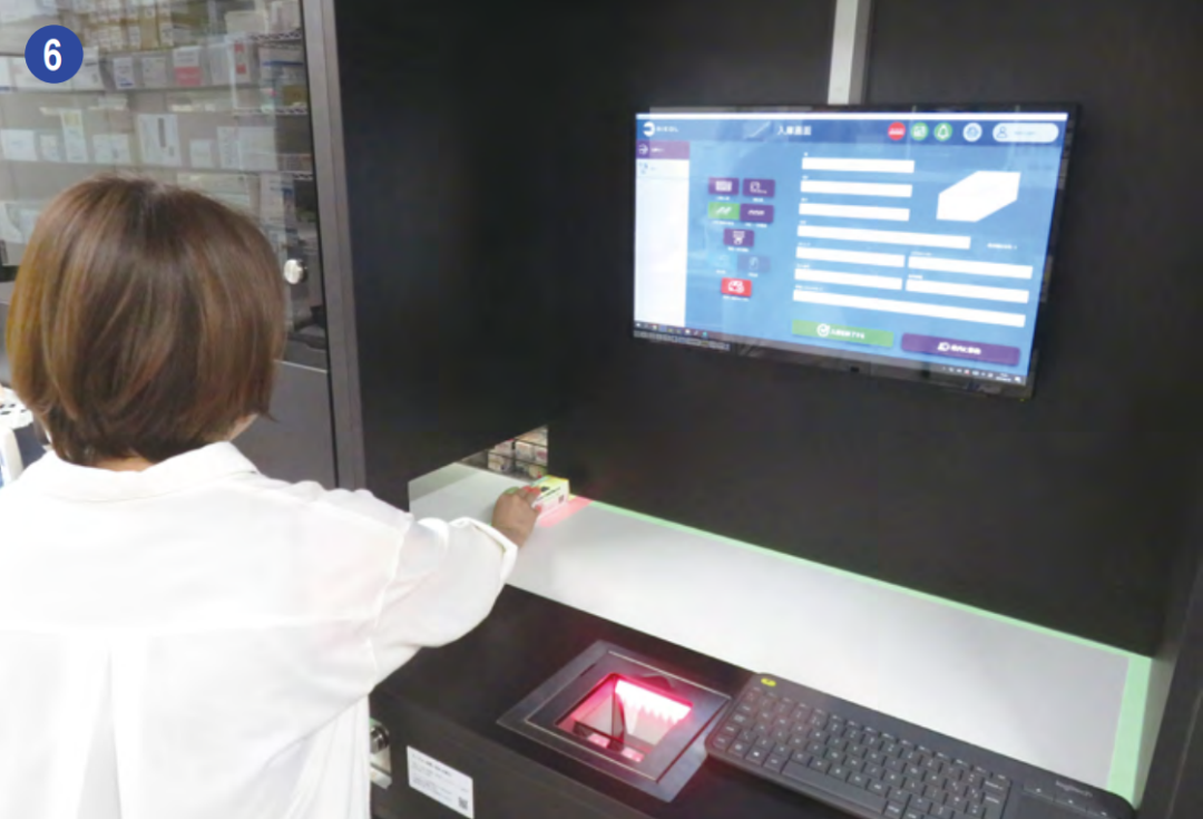▲ 药品入库的基本流程是首先在入库模式下 扫描药箱代码