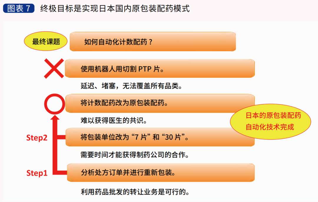 同时,由于日本医生拥有处方权,法律规定必须按照医生的处方进行配药,结合日本实行了全民医保,医保医疗配药占绝对优势,而且医保医疗销售必须由药房提供,因此造成了如此繁琐的流程。于是,在全球众多制造商已开发出适合整盒配药系统的情况下,唯独日本被这一潮流抛在了后面。