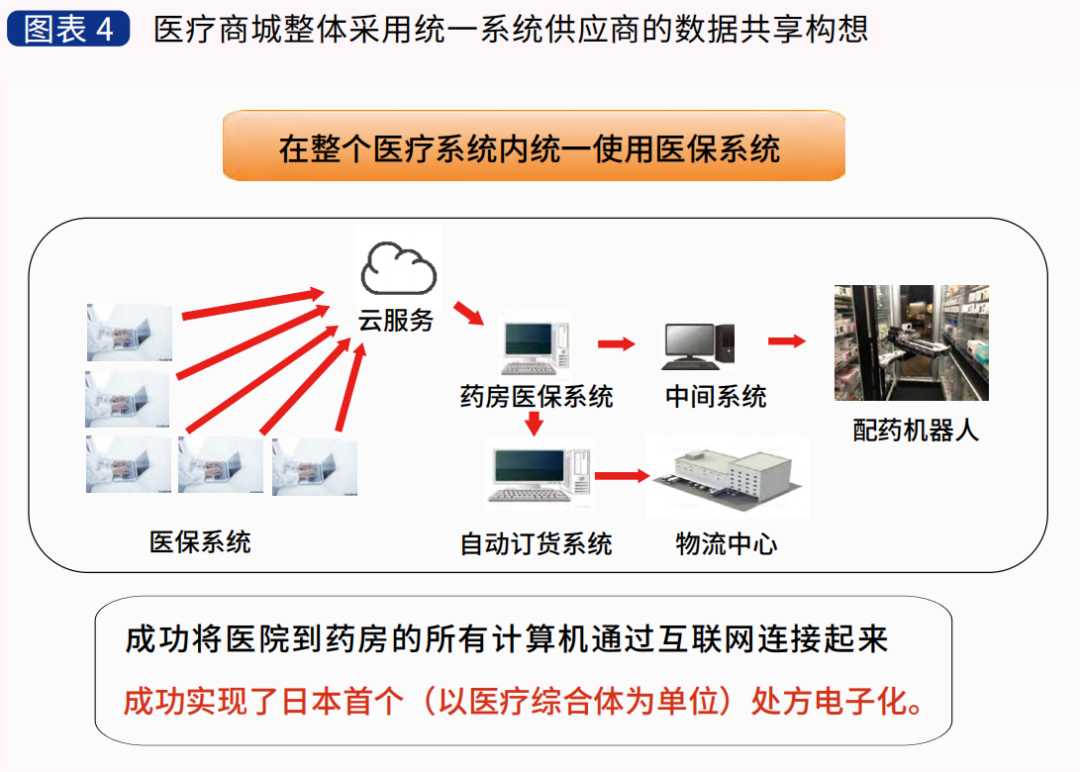 实际上,日本已有的EHR系统完全没普及。因为没有统一接口,非合作供应商之间无法共享。于是渡部正之构思出“以医疗mall为单位采用相同供应商”的方案,并向医生们反复说明:这套系统能消除医生开处方、医院做记录、药房录入医保单等所有手工操作,实现更快捷的配药,对医院经营和患者都有利(图表5)。